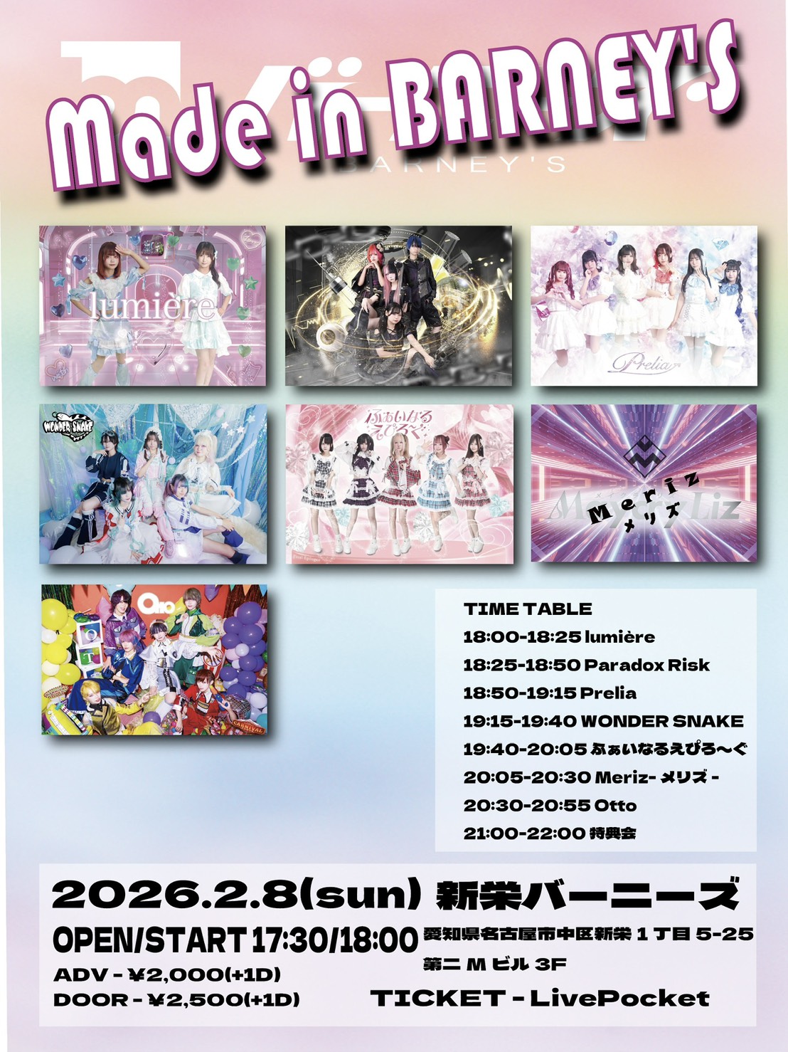1日券 ADV/DOOR ¥5,500/¥7,000 通し券 ADV/DOOR ¥10,000/¥13,000